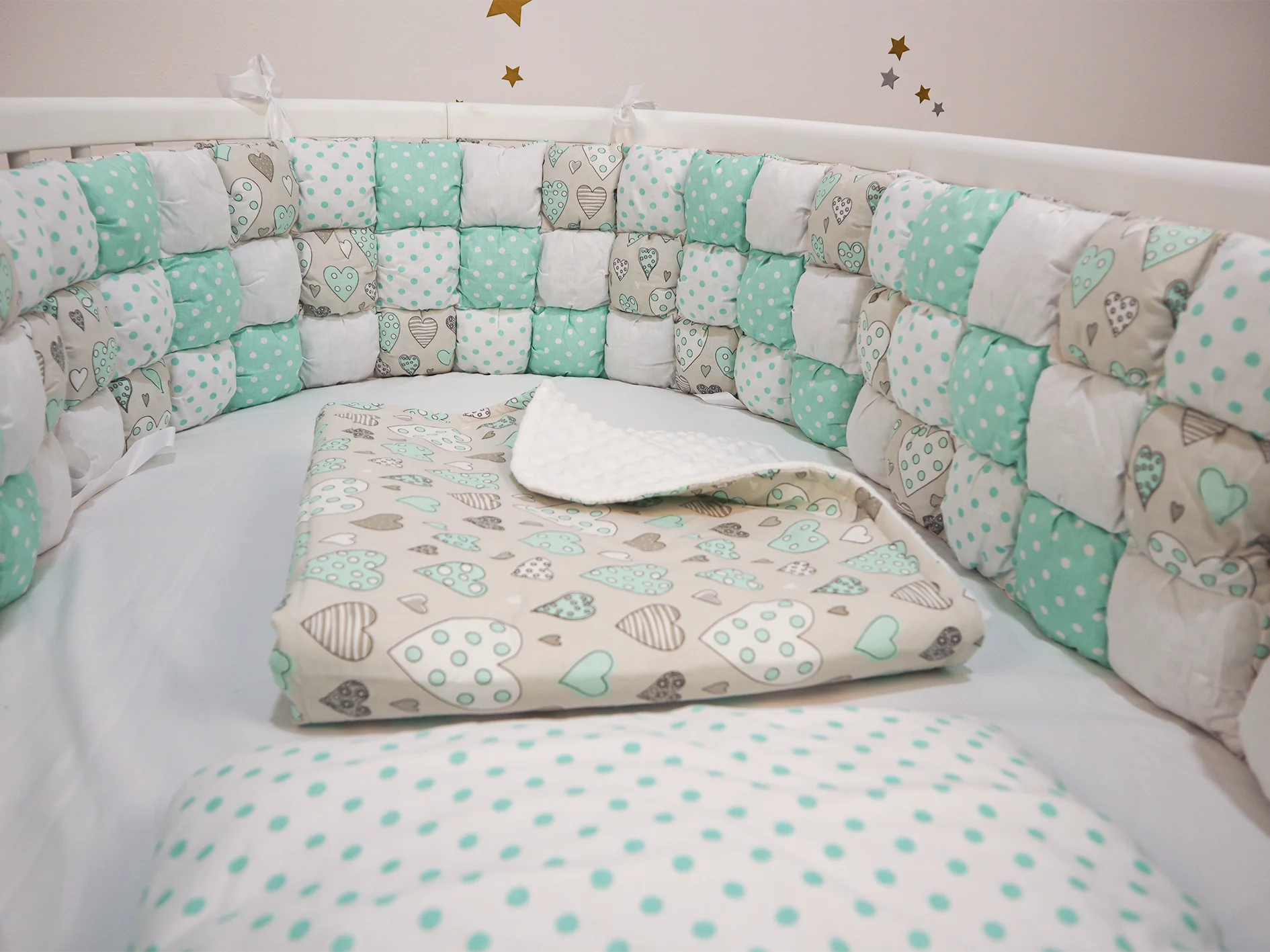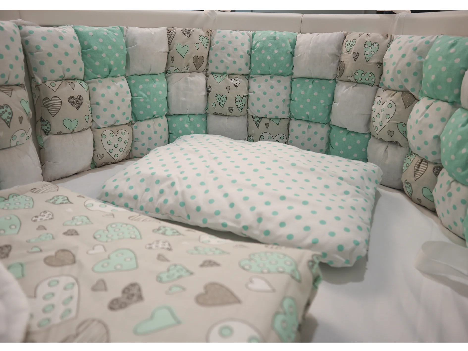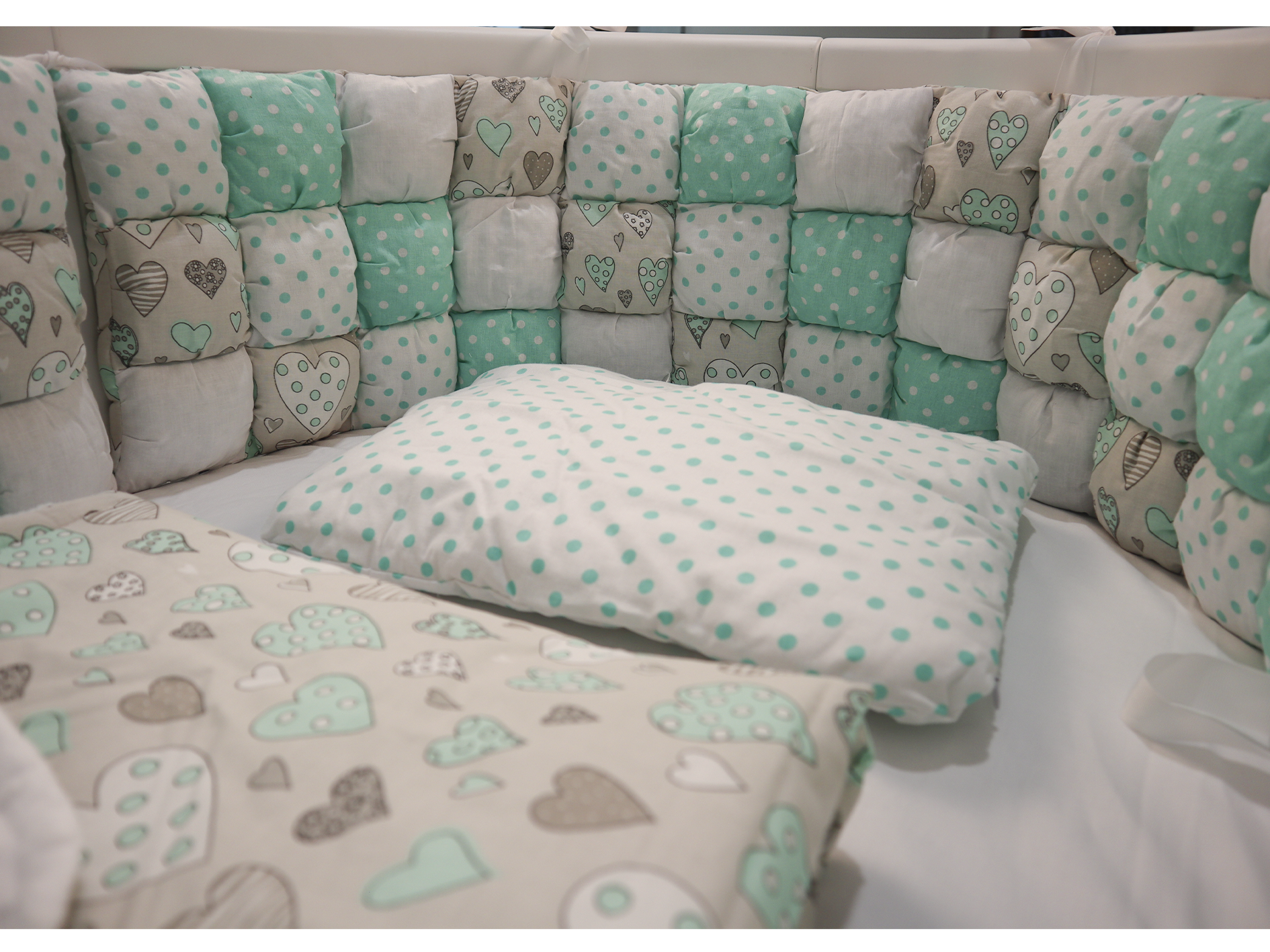 Set Biscuit Softness, menta con corazones garabatos