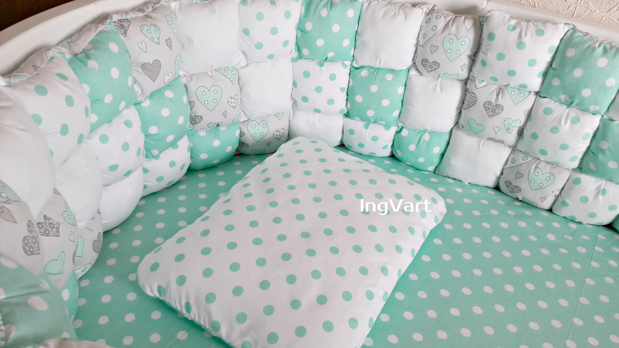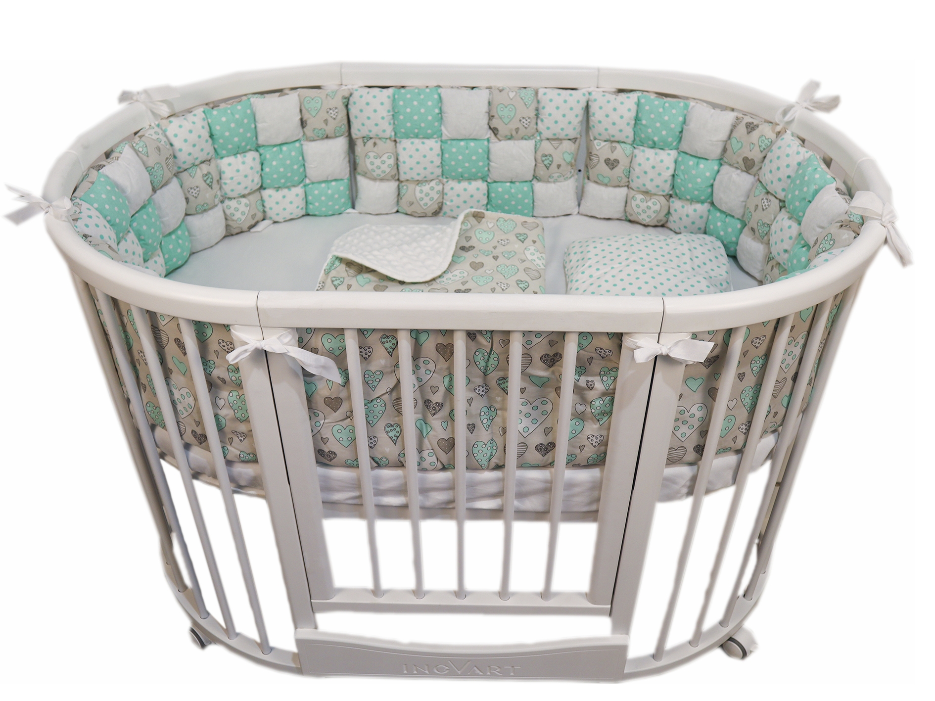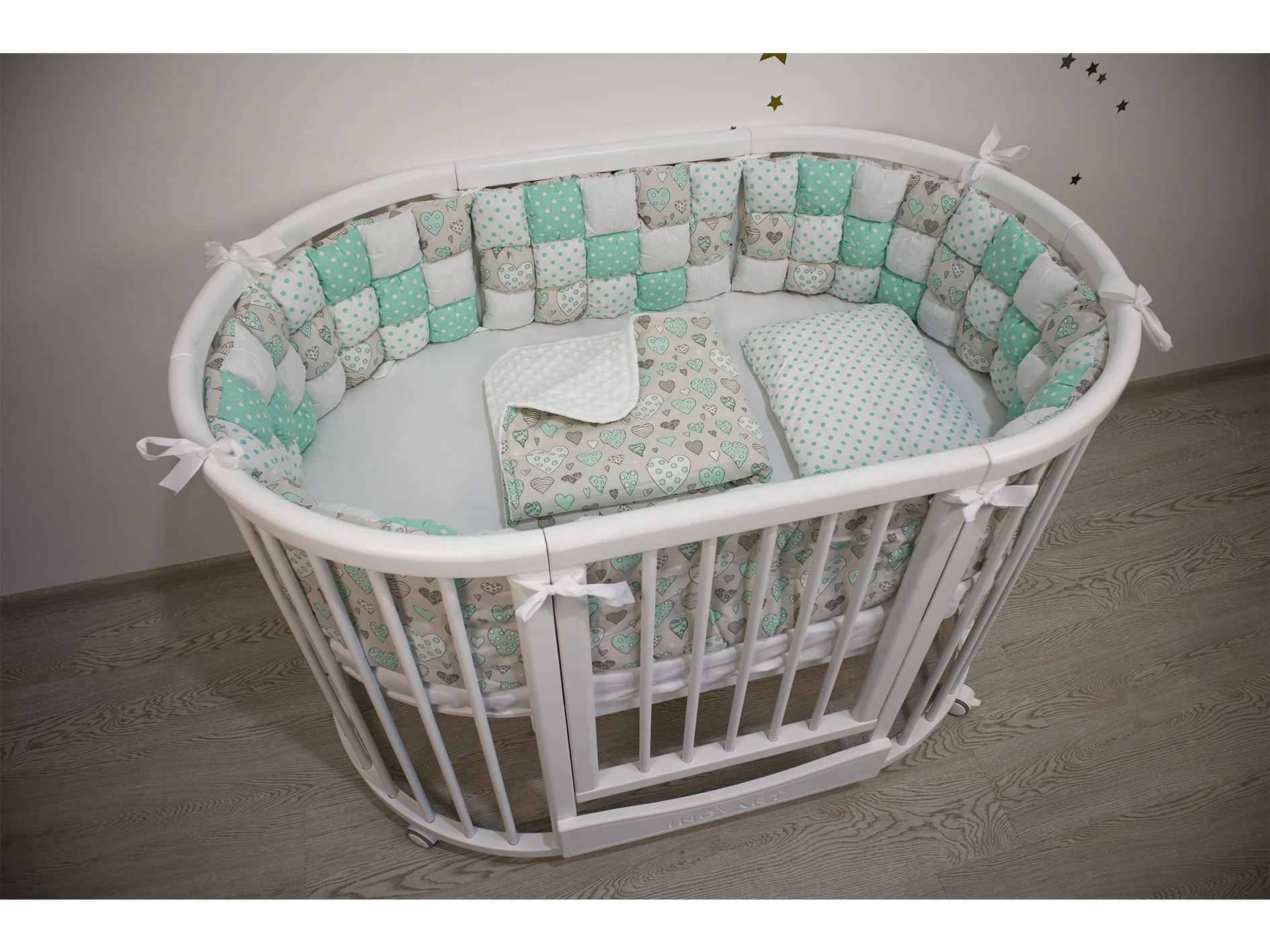Set Biscuit Softness, menta con corazones garabatos