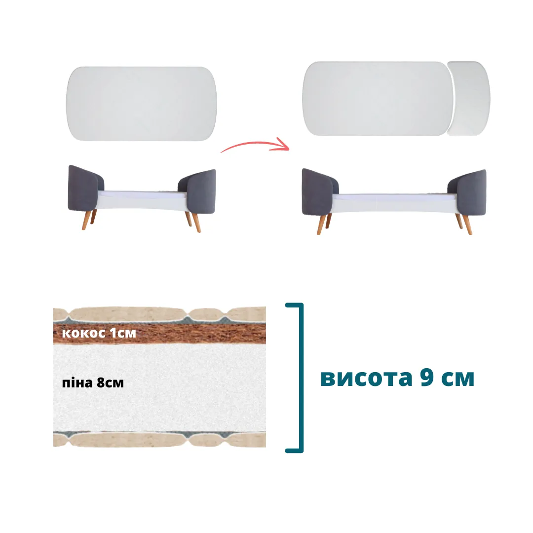 Добавляется к основному матрасу 66х136 см.