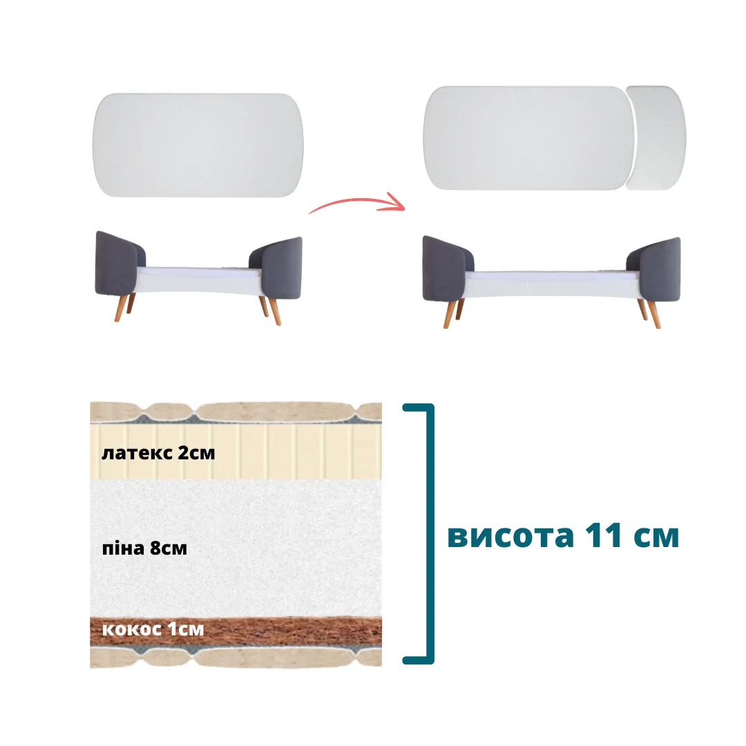 Матрас-полумесяц Флай кокос + пена + латекс (11 см)